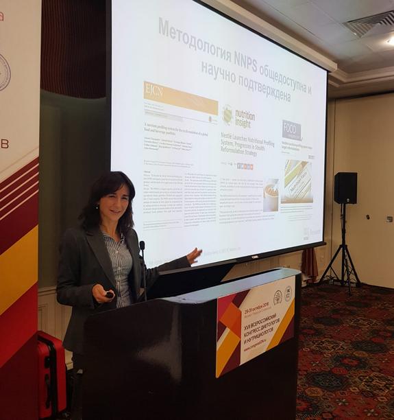В своем докладе профессор А.Н. Мартинчик показал анализ результатов исследования фактического питания детей, Kids Nutrition and Health Study, проведенного ФИЦ питания и биотехнологии совместно с компанией «Нестле». Профессор уделил особое внимание потреблению энергии и макронутриентам в детском питании в зависимости от уровня дохода семьи. Ана Арагон рассказала о научно-доказанных преимуществах системы оценки пищевого профиля «Нестле», а также подчеркнула важность порционного подхода в оценке пищевого профиля для разработки продуктов и их маркировки: ««Мы используем научный метод для оценки пищевой ценности наших продуктов питания и напитков, а также усиленно работаем над созданием инноваций в производстве продуктов питания. В этом контексте система оценки пищевого профиля «Нестле» может оказывать влияние не только на локальном, но и на глобальном уровне. В «Нестле» мы каждый день затрагиваем жизни миллиардов людей по всему миру, поэтому у нас есть огромная возможность сделать вклад в здоровое будущее планеты благодаря улучшенным и инновационным продуктам питания».