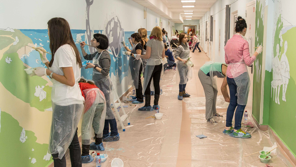 Сотрудники «Нестле» приняли участие в благотворительной акции «Весёлый коридор». Волонтёры компании совместно с другими участниками мероприятия проделали большую работу — расписали яркими красками коридор городской детской клинической больницы им. Башляевой в Тушино. Художниками уже был нанесён на стены рисунок по мотивам сказки «Конёк-Горбунок», который нужно было аккуратно раскрасить нужными цветами, с чем все, включая даже самых маленьких участников акции, прекрасно справились!