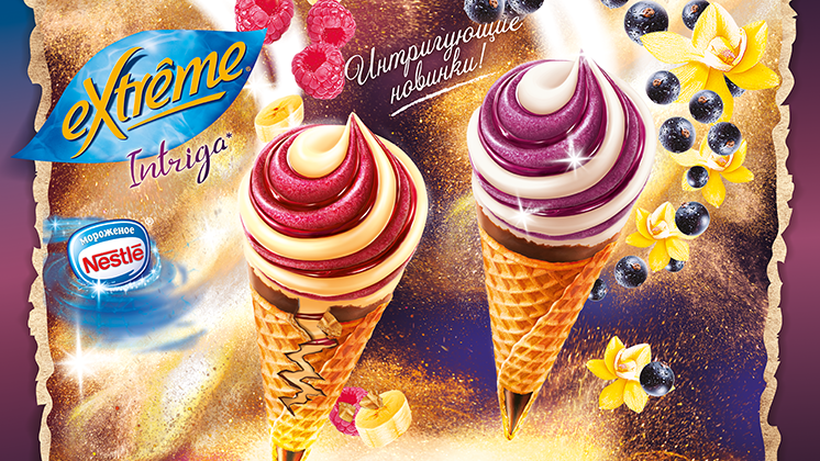 Лето обещает быть жарким вместе с интригующими вкусами мороженого от компании «Нестле Россия». Две соблазнительные новинки: EXTREME Intriga Малина и Банан и EXTREME Intriga Черная Смородина.