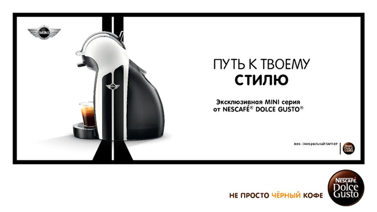 В 2015 году NESCAFÉ Dolce Gusto и MINI решили объединить свой опыт и идеи для создания уникального продукта – эксклюзивной серии кофемашин NESCAFÉ Dolce Gusto MINI Limited Edition. Теперь настоящие ценители кофе смогут насладиться любимым напитком в стиле MINI. Многофункциональная кофемашина сочетает в себе дерзкий стиль, элегантность черно-белой палитры и высокое качество, которое так ценят поклонники NESCAFÉ Dolce Gusto. Все эти составляющие создают абсолютную гармонию внешнего и внутреннего и открывают вдохновляющий мир искусства приготовления кофе.