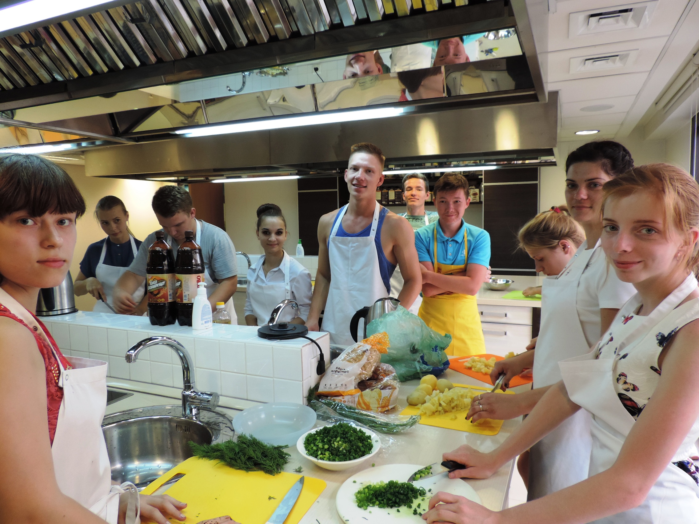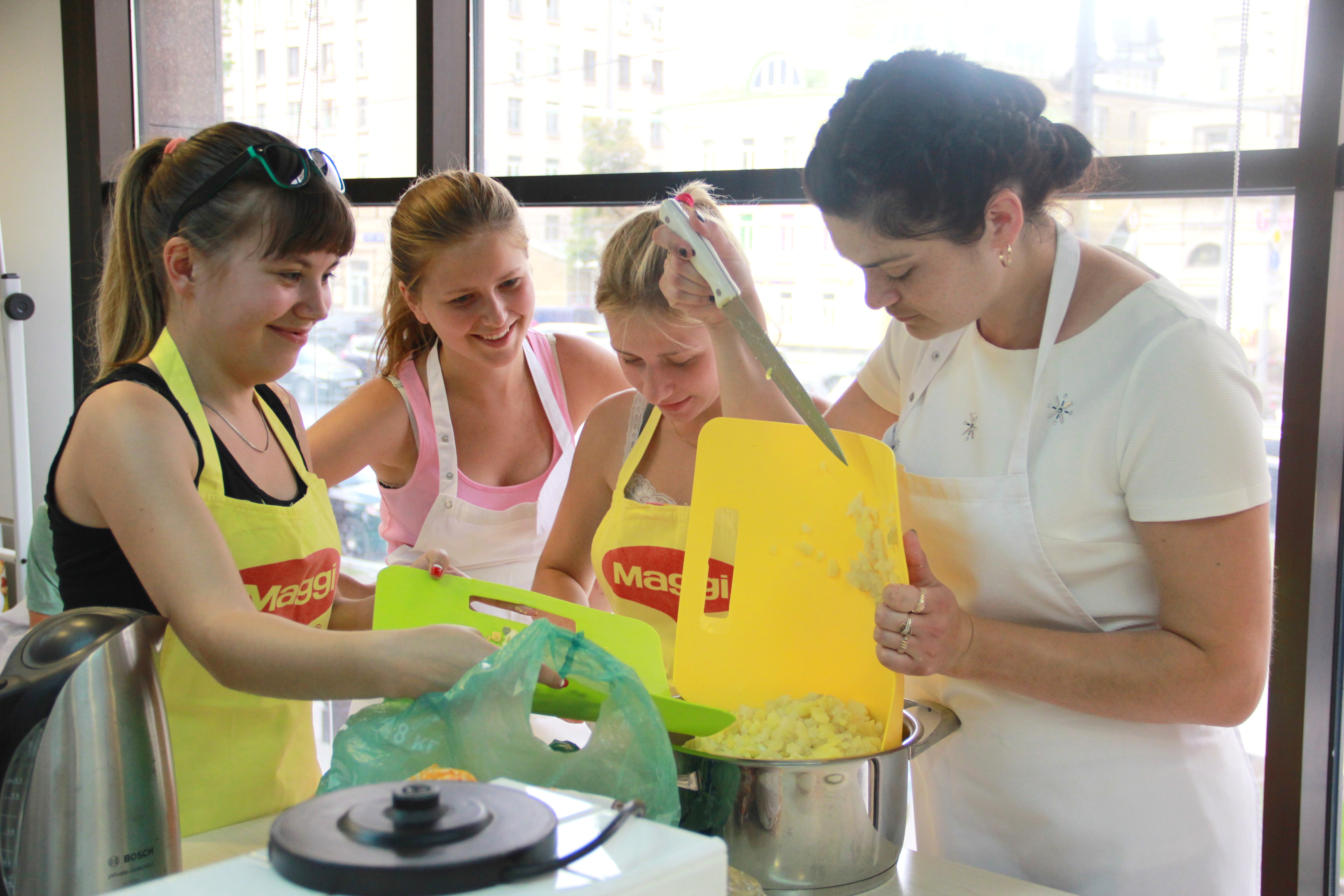 В кулинарном мастер-классе приняли участие 17 выпускников и учащихся школ-интернатов, которые приехали из разных городов: Рязанска, Ярославля и Кировска. Одному из гостей, Алексею, уже посчастливилось ранее побывать в офисе «Нестле» на подобной встрече год назад. Алексей сейчас учится на повара, поэтому, помимо приглашенных профессионалов кулинарного мастерства Марины и Татьяны, на кухне ловко орудовал еще один шеф-повар.