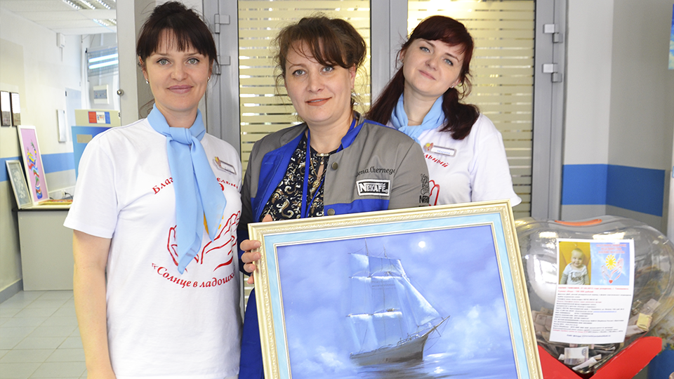 В течение недели партнер предприятия - Тимашевский благотворительный фонд поддержки семьи, материнства и детства «Солнце в ладошках» выставил на продажу изделия ручной работы, поступившие от волонтеров со всей России, в том числе свои работы предоставили сотрудники «Нестле Кубань».