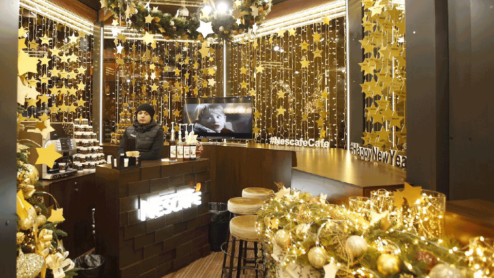 23 декабря 2016 года на площади Революции в рамках фестиваля «Путешествие в Рождество» открылся уникальный кофе-бар от NESCAFÉ. Специально для гостей было создано уютное кафе в лучших рождественских традициях: теплый камин, украшенные ели, сверкающие гирлянды и, конечно, волшебный аромат кофе NESCAFÉ Gold.